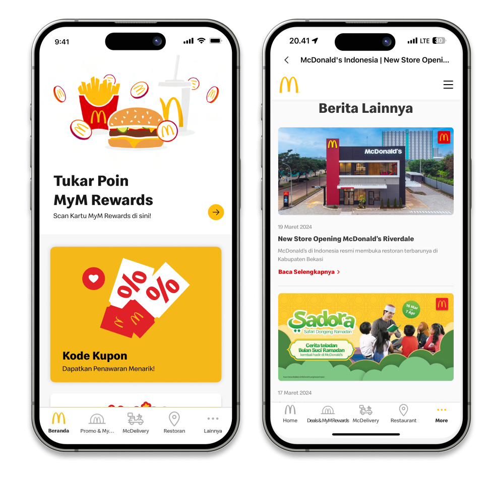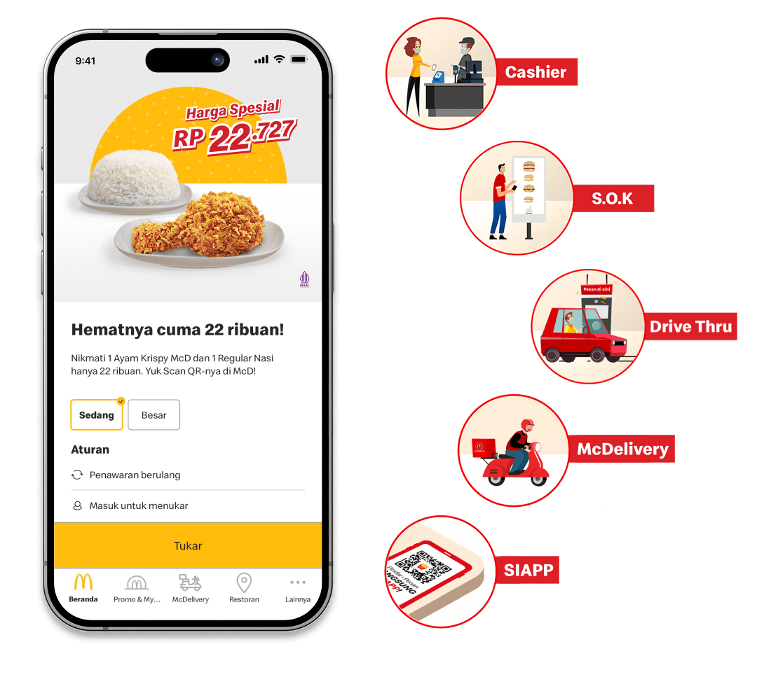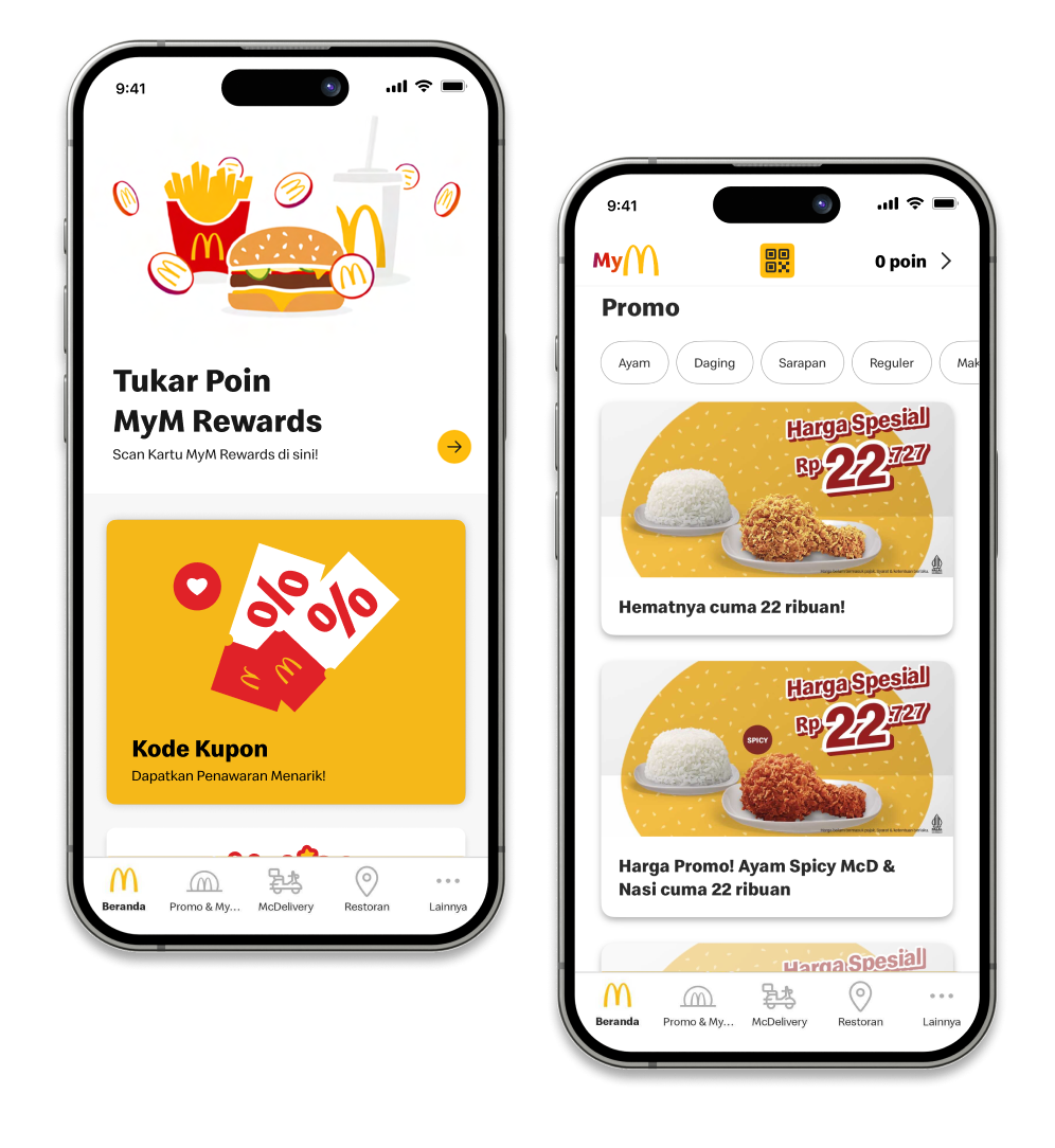 Lihat promo-promo terbaru dan penawaran menarik lainnya di Aplikasi McDonald's dan scan promonya di McDonald's terdekat