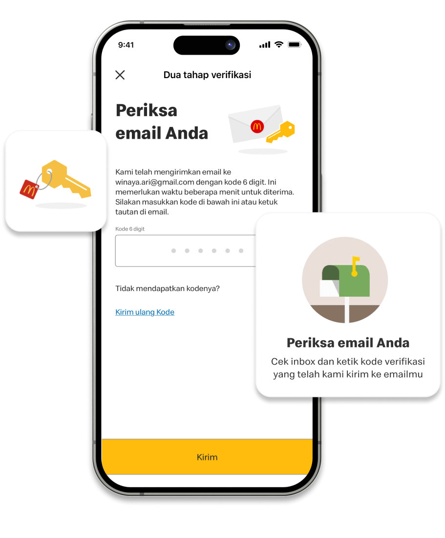 Two-Factor Authentication adalah fitur keamanan pada aplikasi McDonald’s, yang berfungsi untuk menjaga akun Anda dari risiko pencurian ataupun pembobolan.
